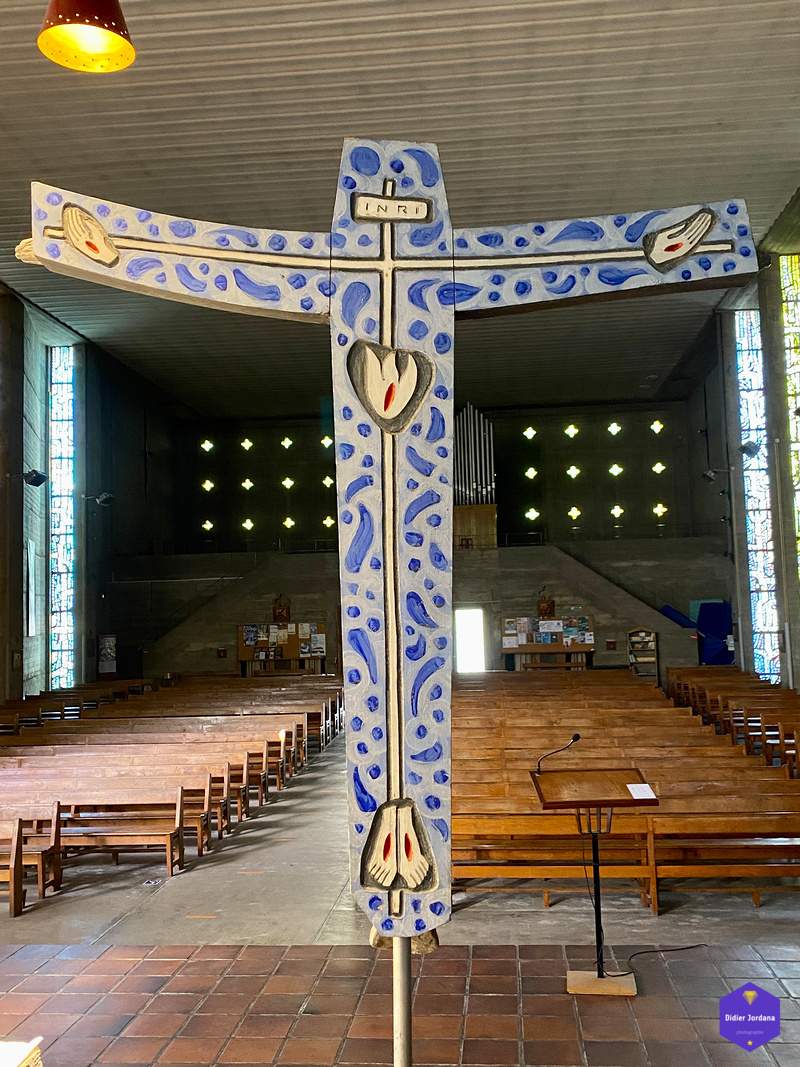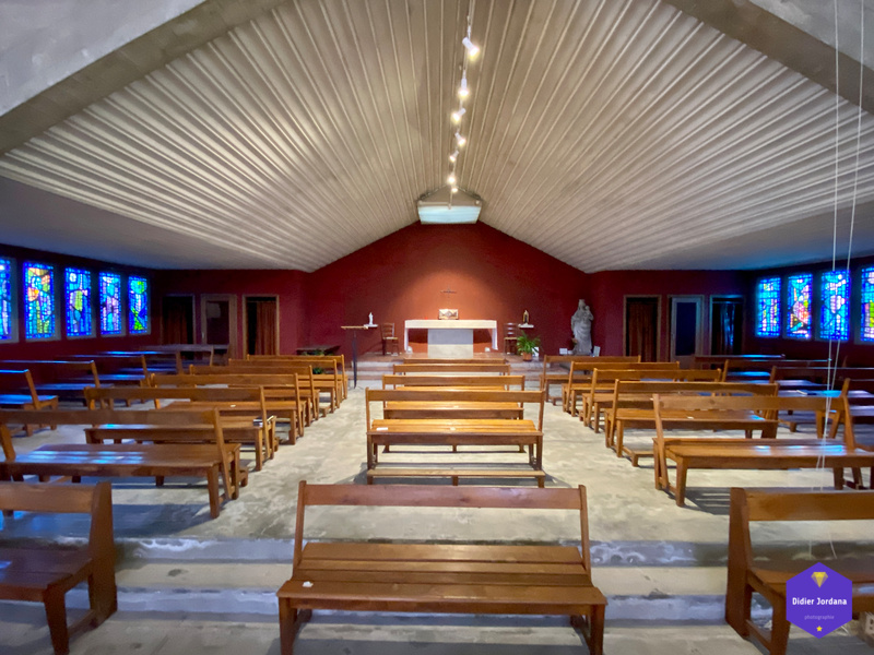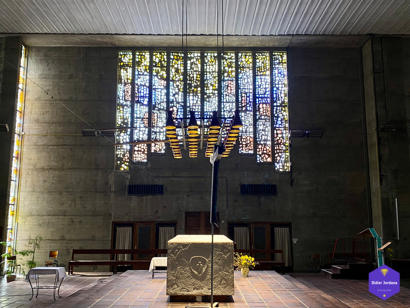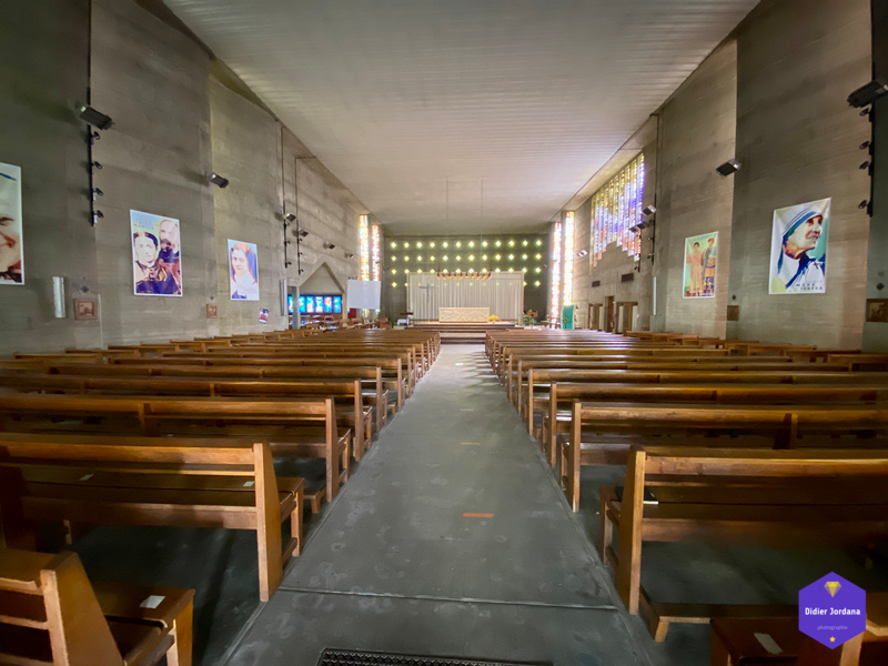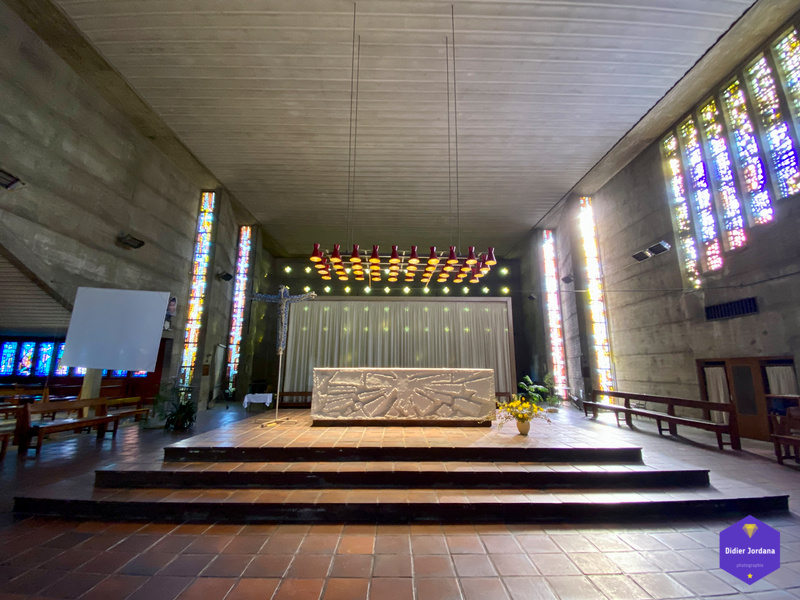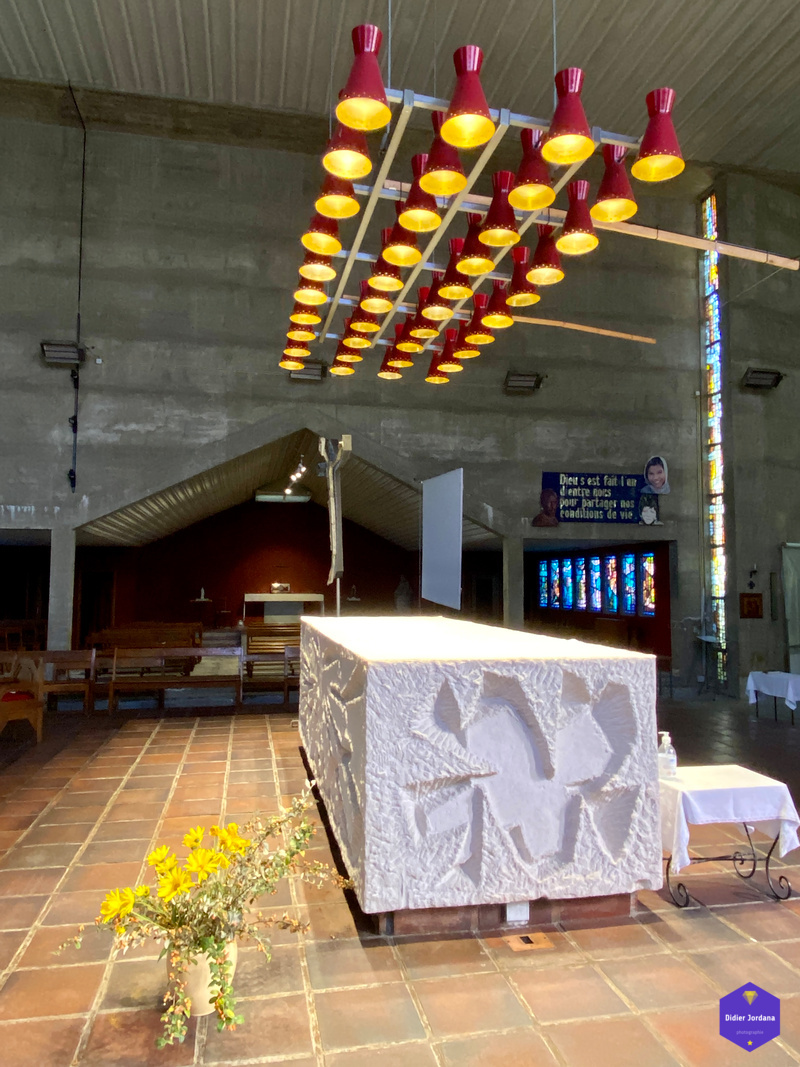 Une église conçue dans les règles de l'architecture religieuse de l'époque après-guerre et dans un esprit de simplicité et de dépouillement souhaité par les paroissiens.